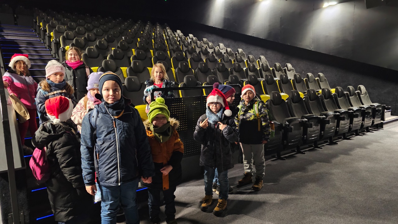 W czwartek dzieci otrzymały list od Mikołaja, a w nim zaproszenie do kina. Radość była wielka. W piątkowy poranek uczniowie wybrali się na film "Mysz-masz na święta ". Po powrocie, w szkole dzieci przywitał pomocnik Mikołaja i poczęstował cukierkami.