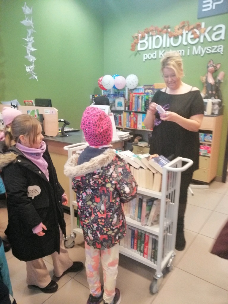 Uczniowie z 2a pamiętali o urodzinach "Kota i myszy" - ulubionej biblioteki.