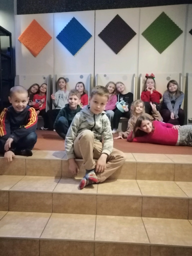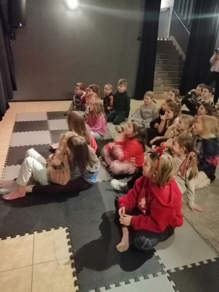 Uczniowie z 2a w Mostowni na przedstawieniu "Piko i Miko podejmują świąteczne ryzyko". - Szkoła Podstawowa nr 17 im. hetmana Stefana Czarnieckiego