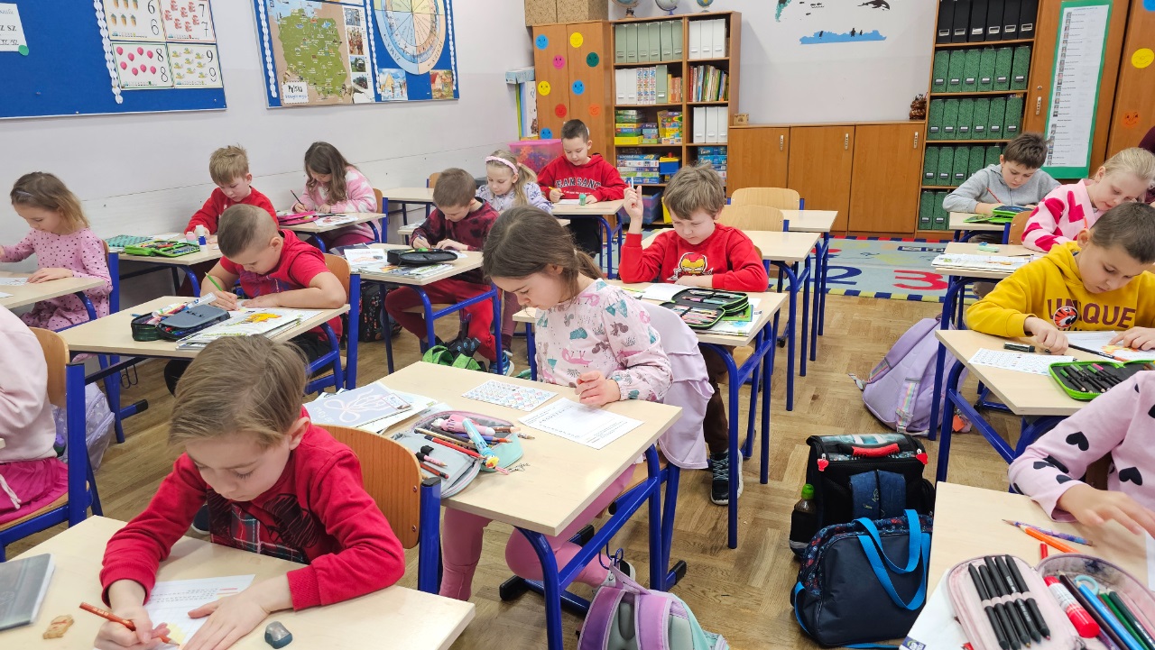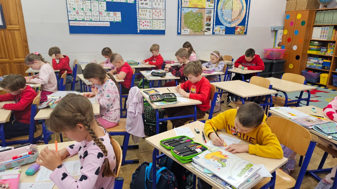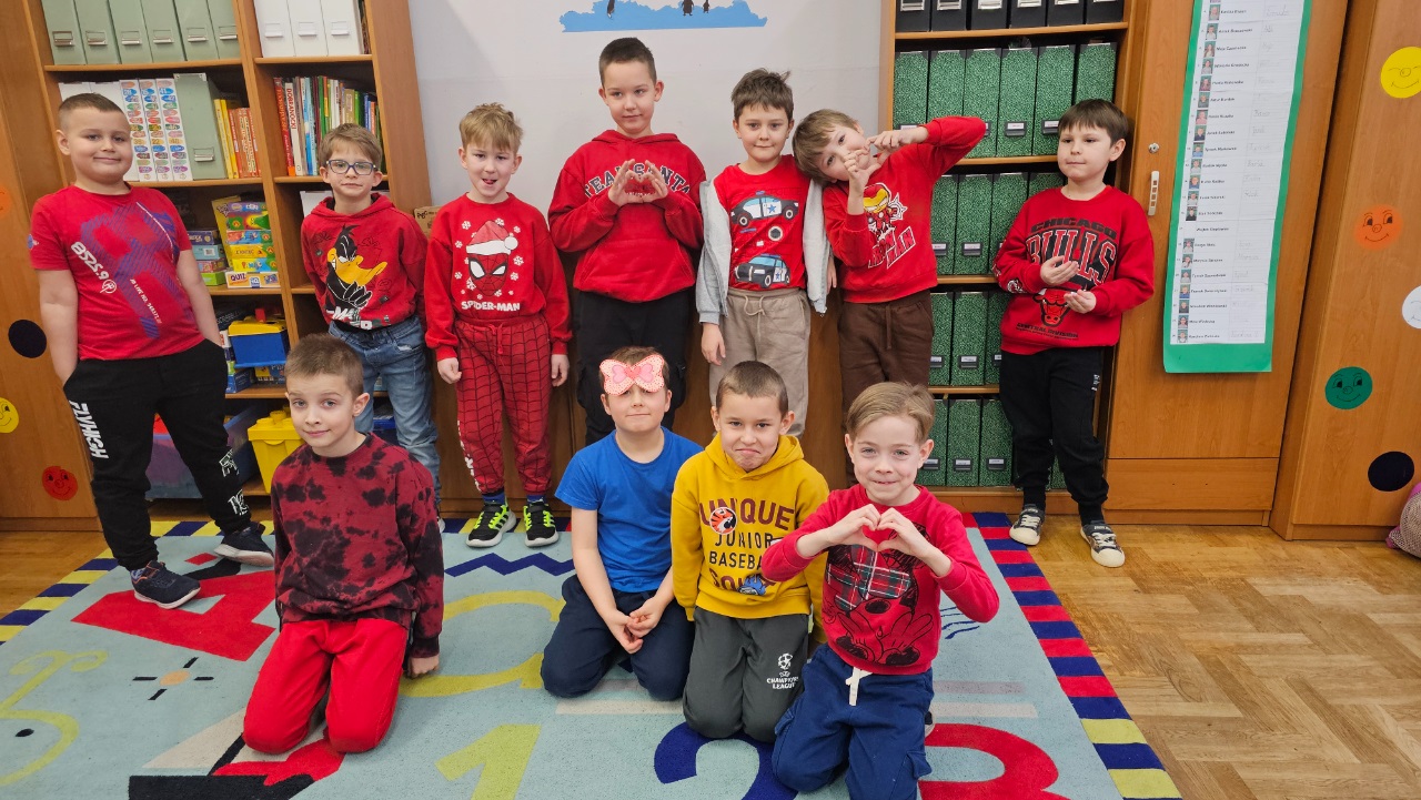 Kolor czerwony i różowy gościł dziś w klasie 1a. Serduszka, mile słowa, walentynkowa piosenka i walentynkowe zadania. I nawet bohater czytanej książki zakochany w modelce. To był wesoły, miły dzień.