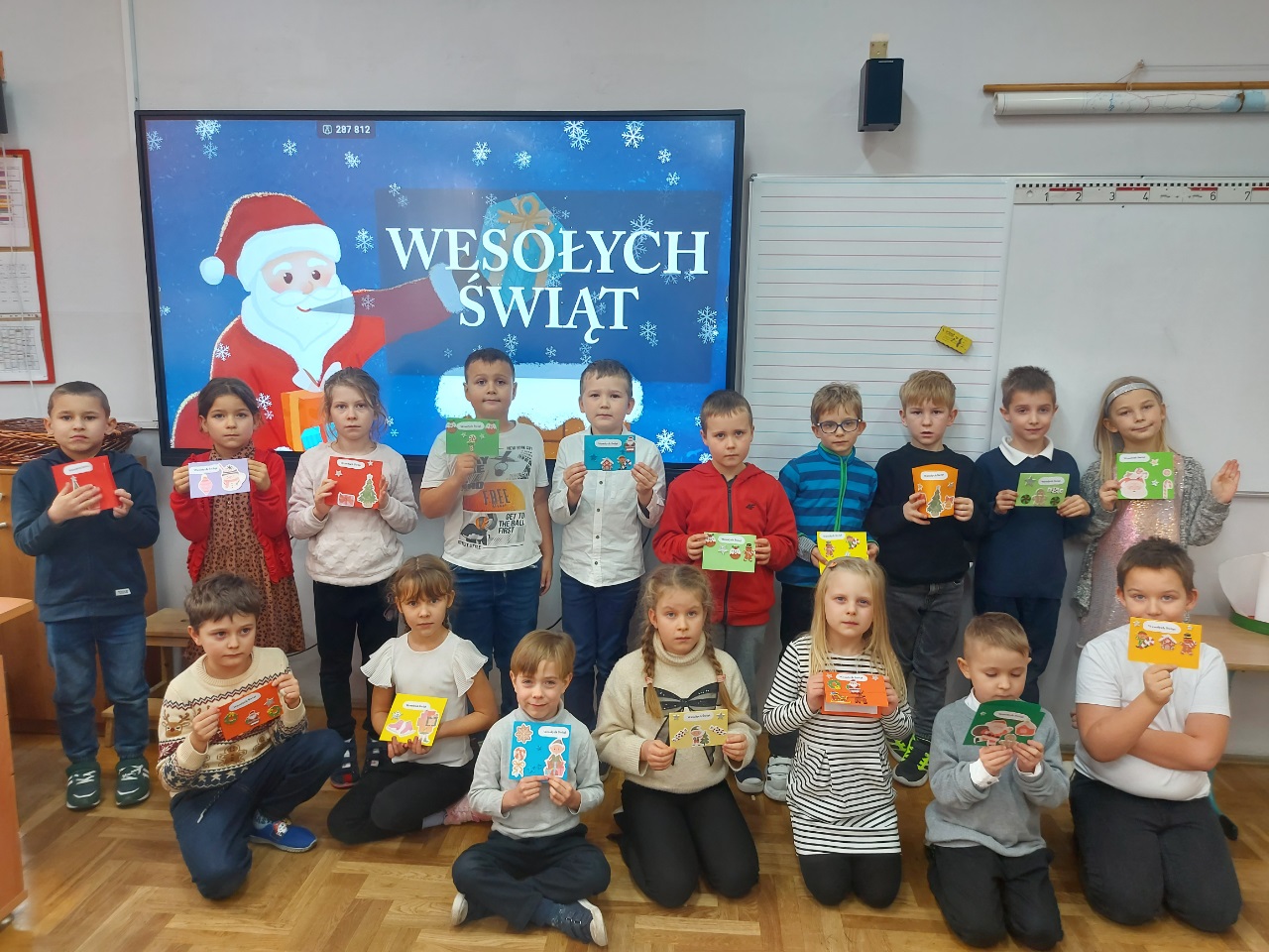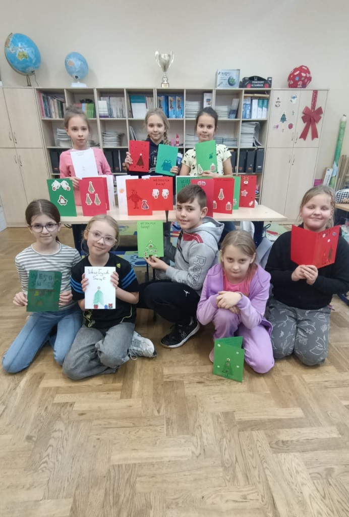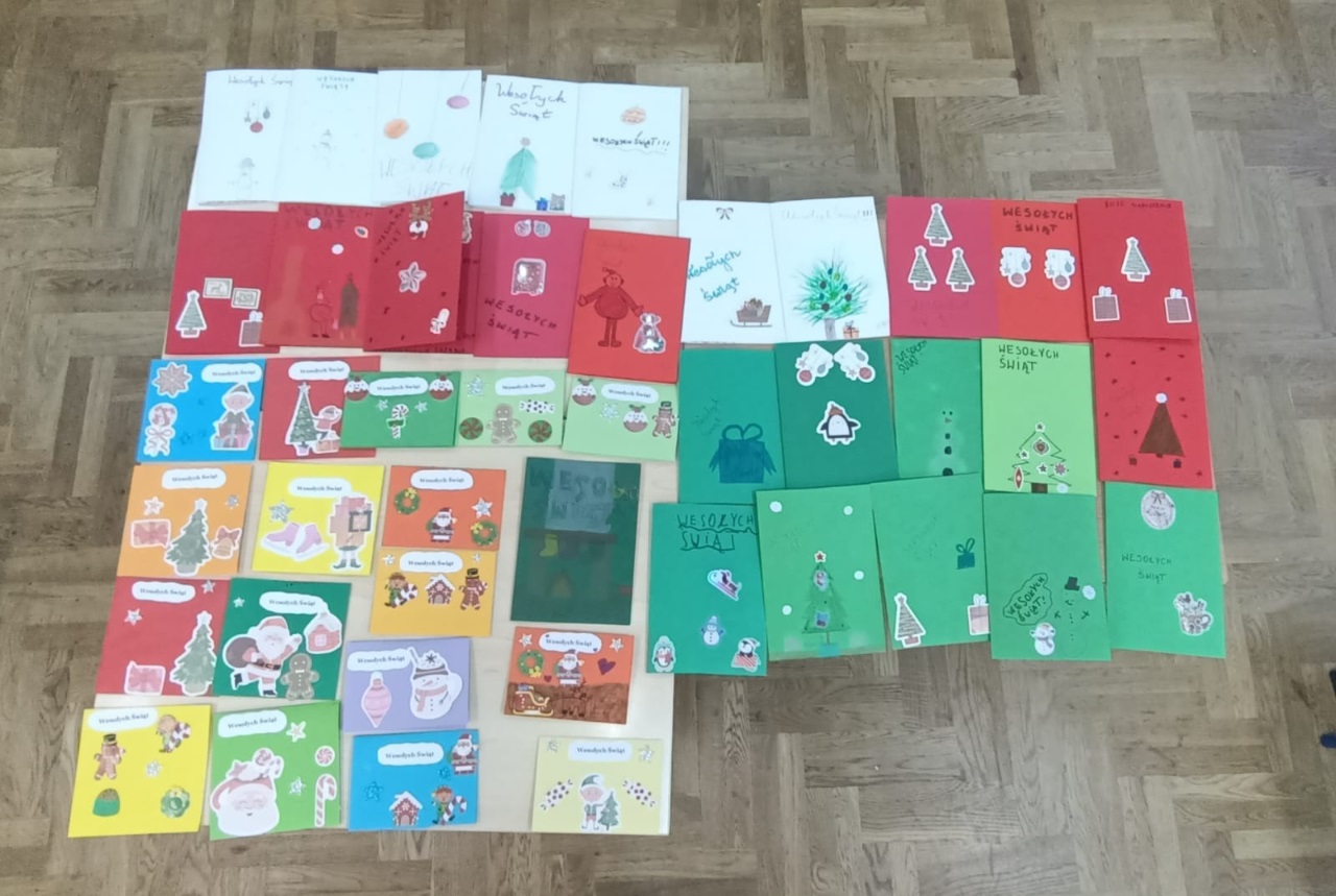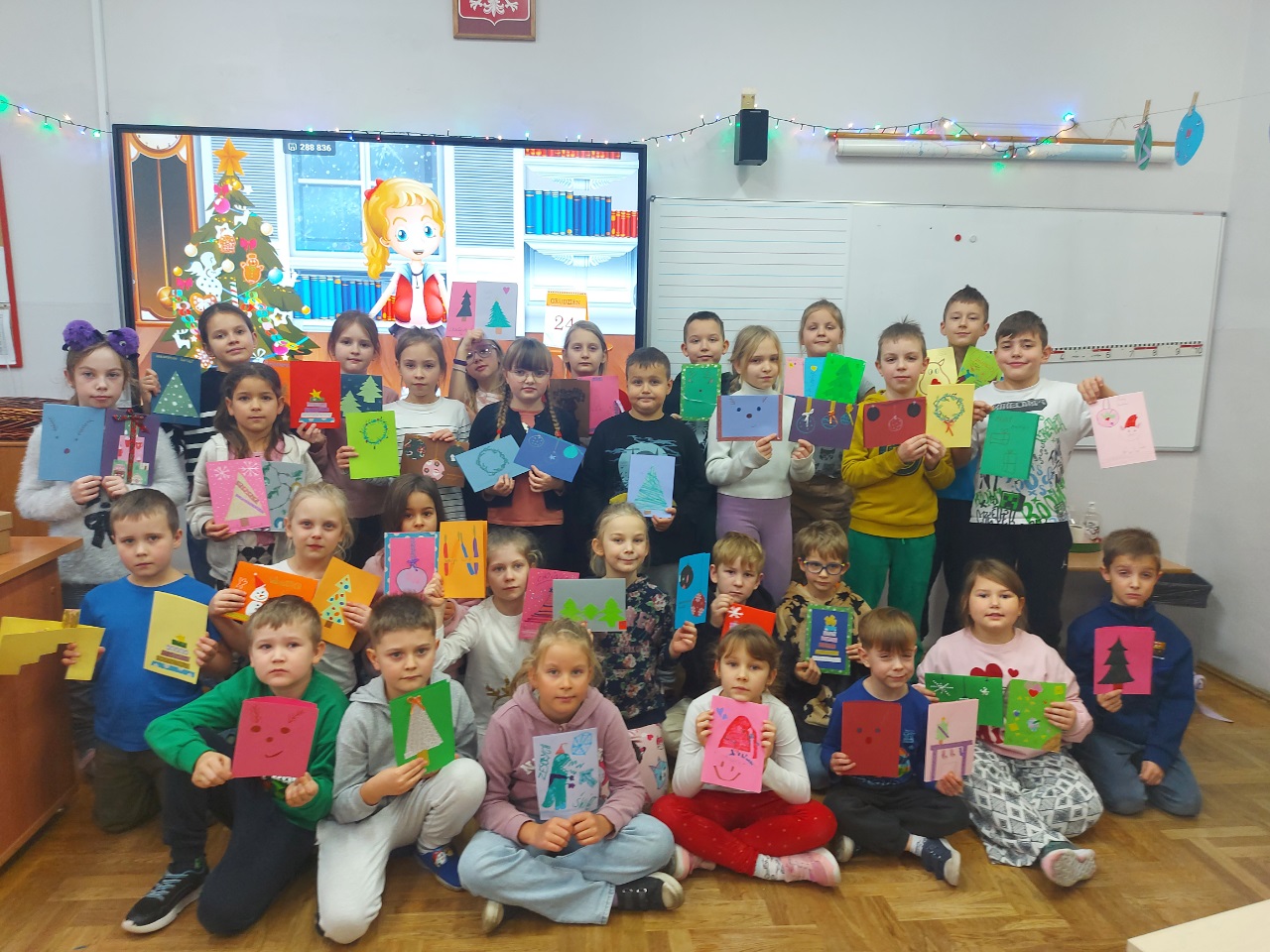 Wymiana kartek świątecznych uczniów świetlicy kl.1a i 3a z uczniami Szkoły Podstawowej nr 5 w Gdańsku.